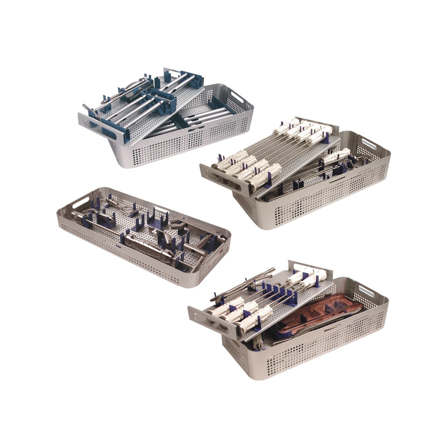 The Tecomet Hip Revision System includes everything needed to revise a total hip. Our system is completely modular with an Acetabular Tray, Femoral Tray, Extraction Tray and Trephine Tray. The combination of the most widely used cement resection tips and removal instruments accommodate femoral and acetabular component removal.